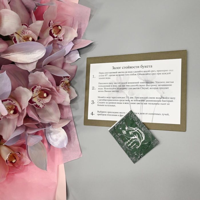 ЦИМБИДИУМ – 9 шт.Рускус – 10 шт.Упаковка дизайнерская – 1 шт.