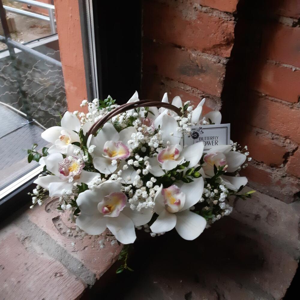 ЦИМБИДИУМ – 11 шт.Самшит – 5 шт.Гипсофила – 5 шт.Корзина – 1 шт.Оазис – 1 шт.