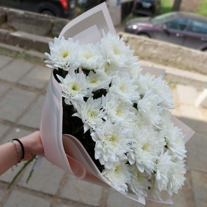 Букет из 5 белоснежных хризантем