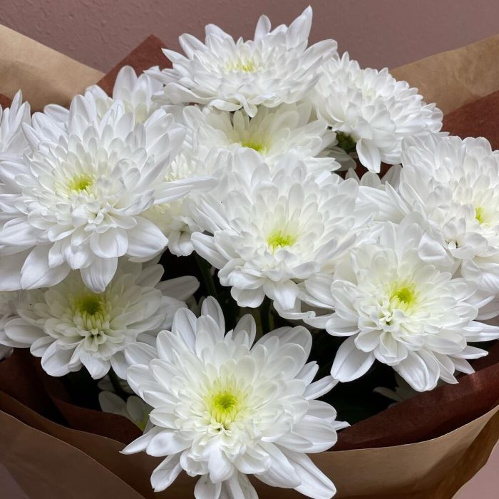 Хризантема – 3 шт.Лента атласная – 1 шт.Тишью – 1 шт.Крафт – 1 шт.