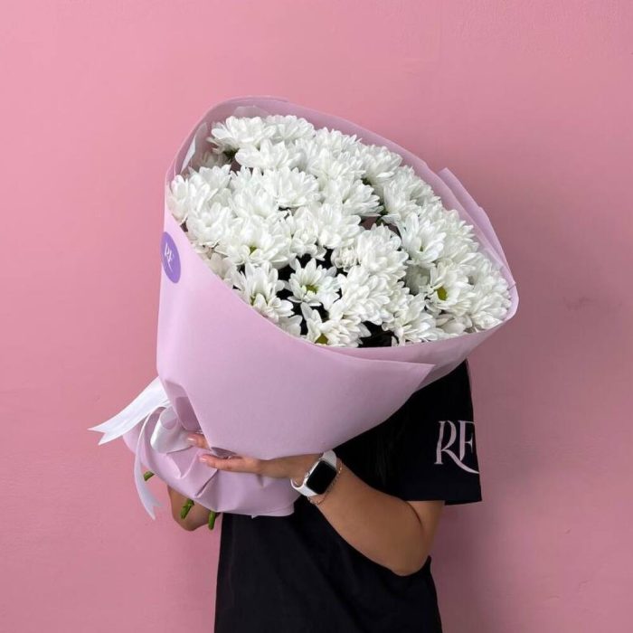 Шикарный монобукет из ромашковидных хризантем