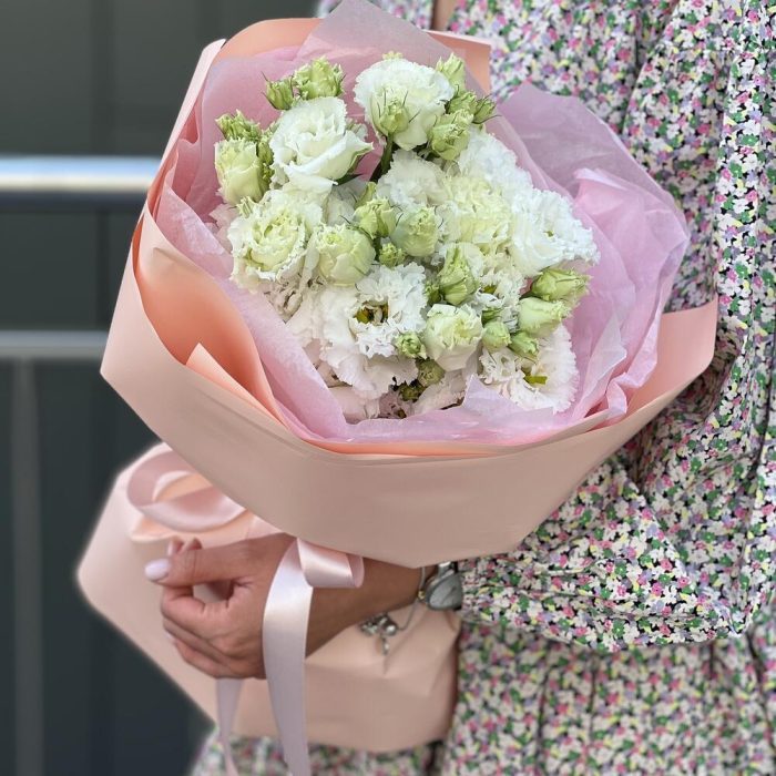 Писташ – 2 шт. Эустома – 5 шт. Оформление – 1 шт.