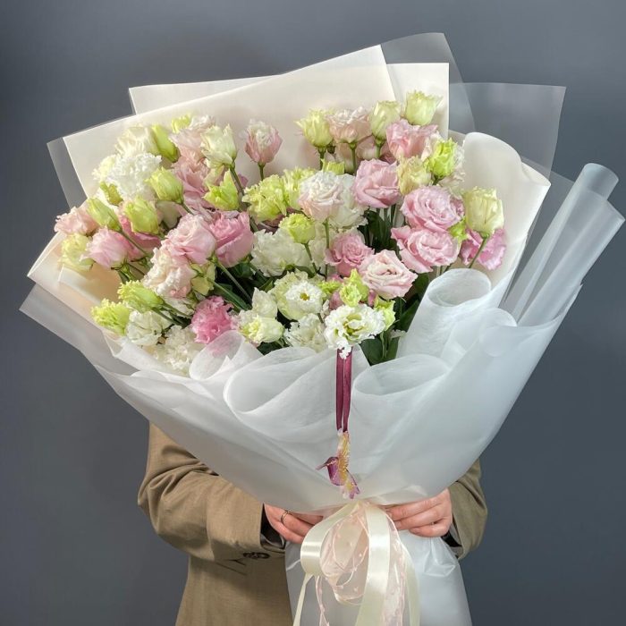 Лента – 2 шт.Лизиантус – 15 шт.Упаковка дизайнерская – 2 шт.