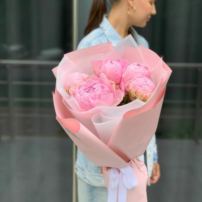 Букет из 15 розовых, голландских пионов