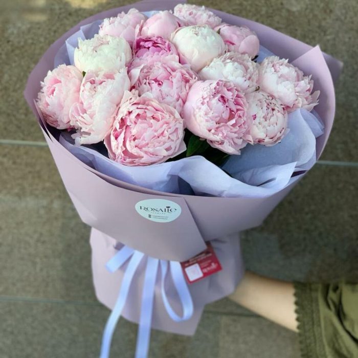 Лимонный щербет - Букет с пионами и пионовидными розами