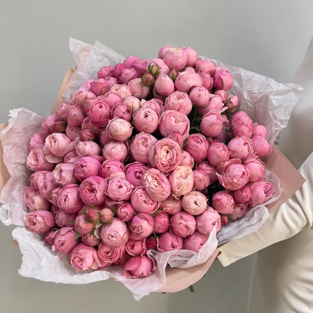 Упаковка дизайнерская – 4 шт.Пионовидная кустовая роза – 41 шт.Тишью белое – 4 шт.