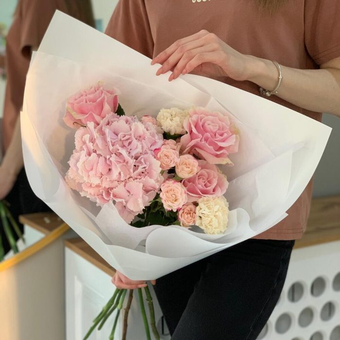 Гвоздики, Кустовые розы, Пионовидные розы, Розы