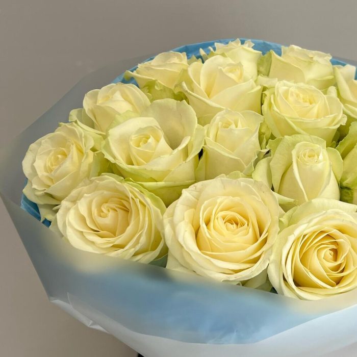 Роза – 15 шт.Лента атласная – 2 шт.Упаковка дизайнерская – 3 шт.
