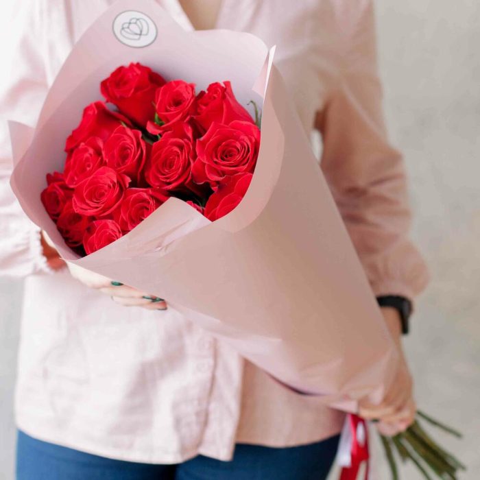 Букет из 15 красных роз 70см