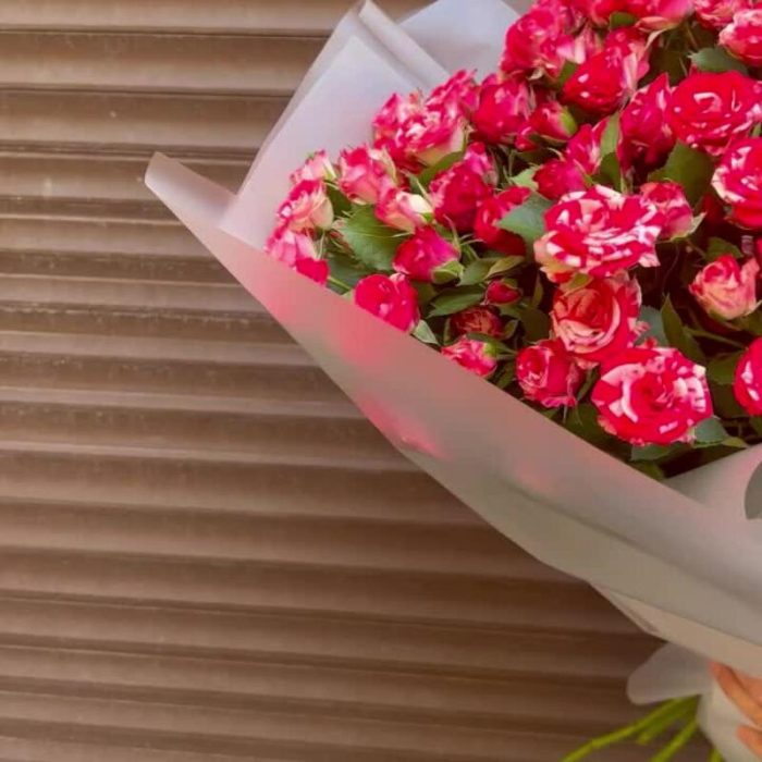 Лента – 2 шт.Пленка матовая – 3 шт.фаервокс роза кустовая – 15 шт.