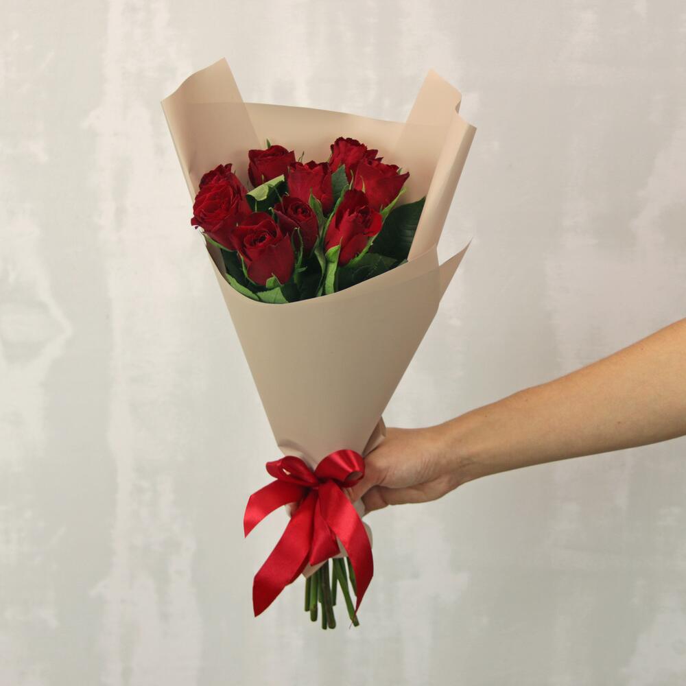 Букет из 9 красных роз 35-40 см (Кения) в стильной упаковке
