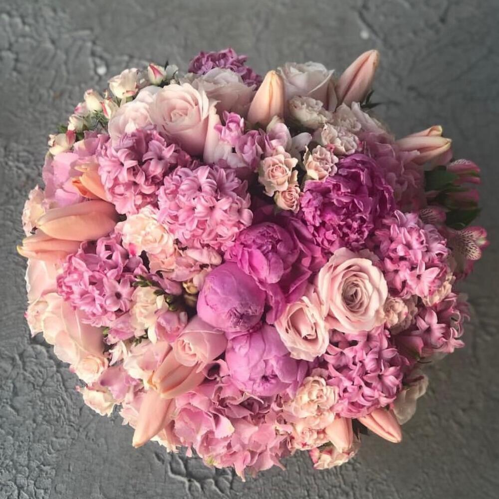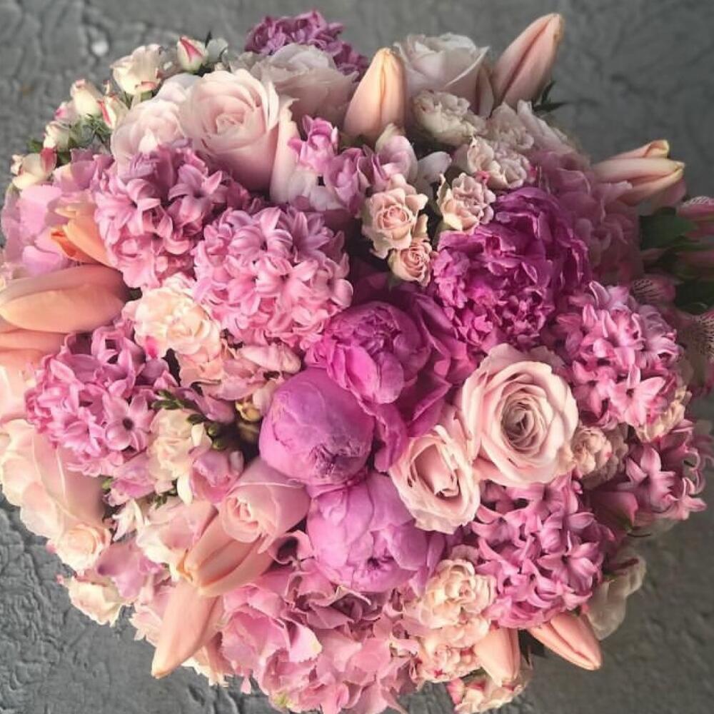 Букет из пионов, гортензий, тюльпанов, сирени и ассорти роз