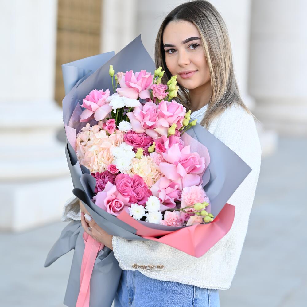Гвоздики, Кустовые розы, Лизиантусы, Пионовидные розы, Розы