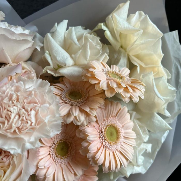 Букет с пионовидными розами и герберами “Нежный”