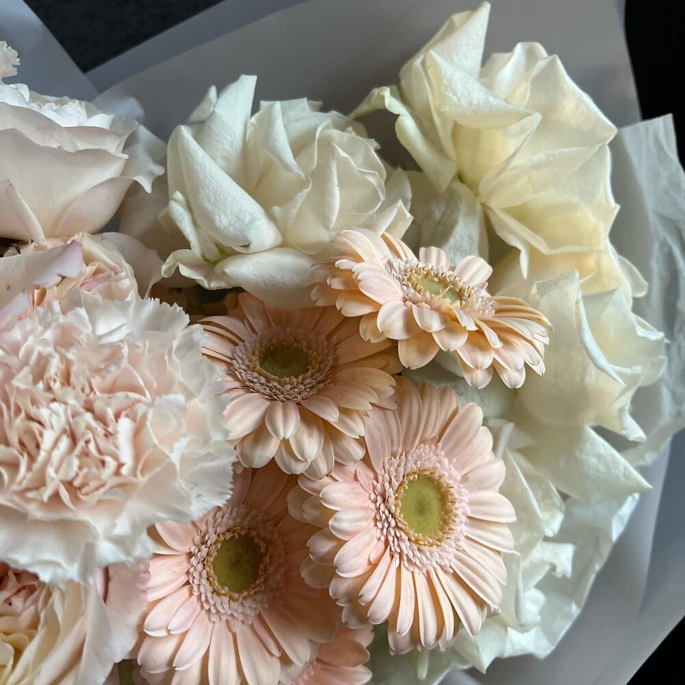 Букет с пионовидными розами и герберами "Нежный"