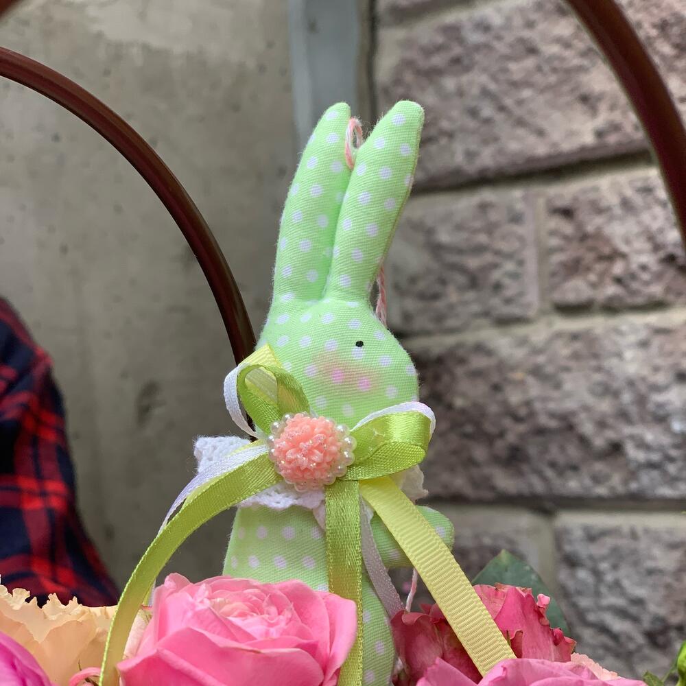 Удобная композиция в крафтовом пакете с игрушкой ручной работы будет замечательным подарком каждому получателю!!! P.S. В не сезон Пионов,будет замена на Пионовидные розы.