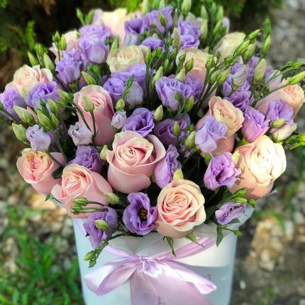 Нежные розы и Эустома в коробке "Особый случай"