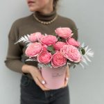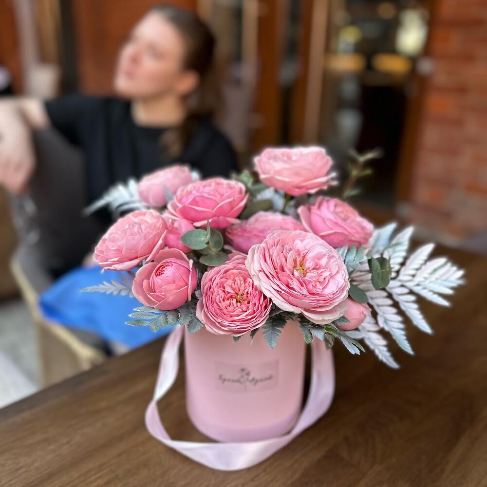Коробка «Mama Mia» (Роза пионовидная кустовая и зелень)