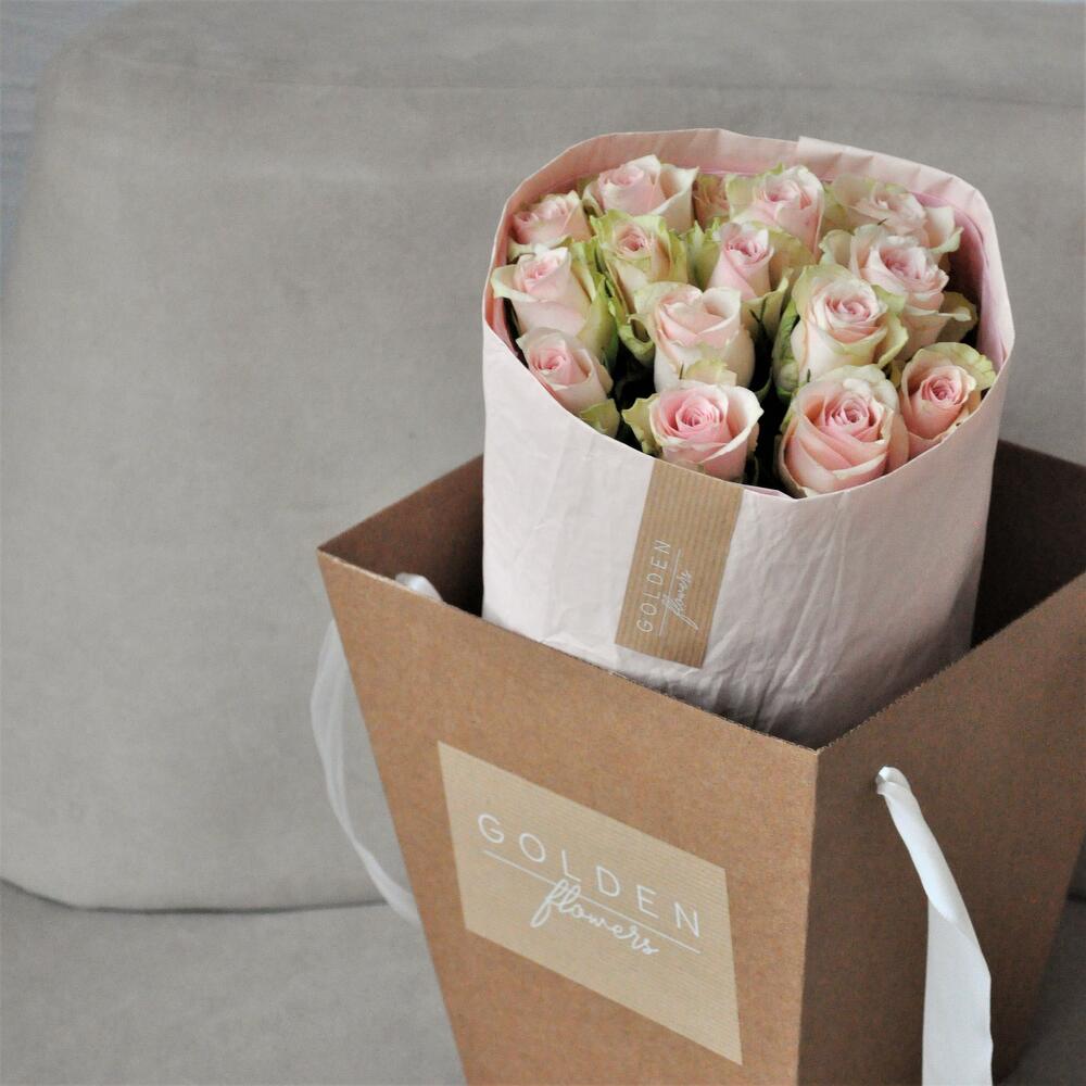 Тишью – 2 шт.Крафтовая упаковка – 1 шт.роза кения – 15 шт.транспортировочный фирменный пакет – 1 шт.