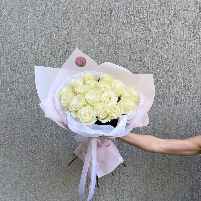 Этот монобукет белых роз – проявление чистоты, нежности и восхищения. Создайте настоящий праздник для ваших родных и близких с этим удивительным букетом, состоящим только из свежих цветов. Бесплатная доставка по Тбилиси делает заказ еще более легким и приятным.