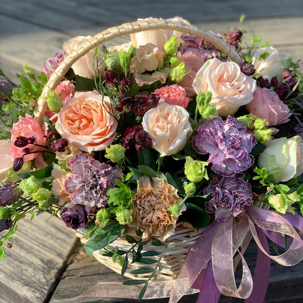 Метки: от 5000 руб, цветы в корзине