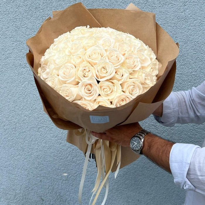 31 кремово белая роза 60 см