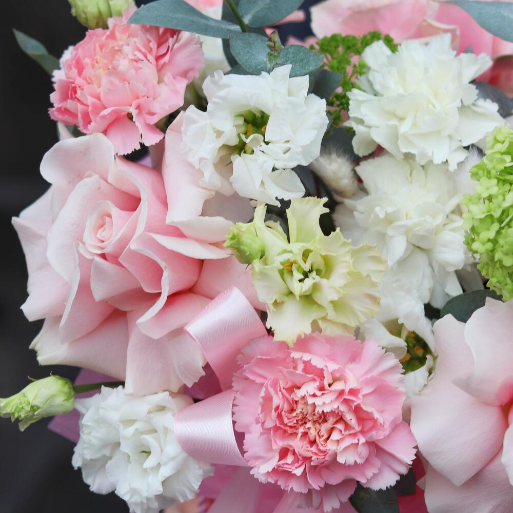 Категории: Гвоздики, Лизиантусы, Розы
