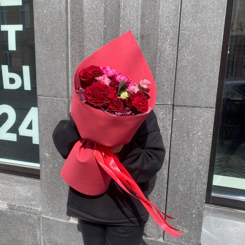 Гвоздики, Кустовые розы, Лизиантусы, Пионовидные розы, Розы