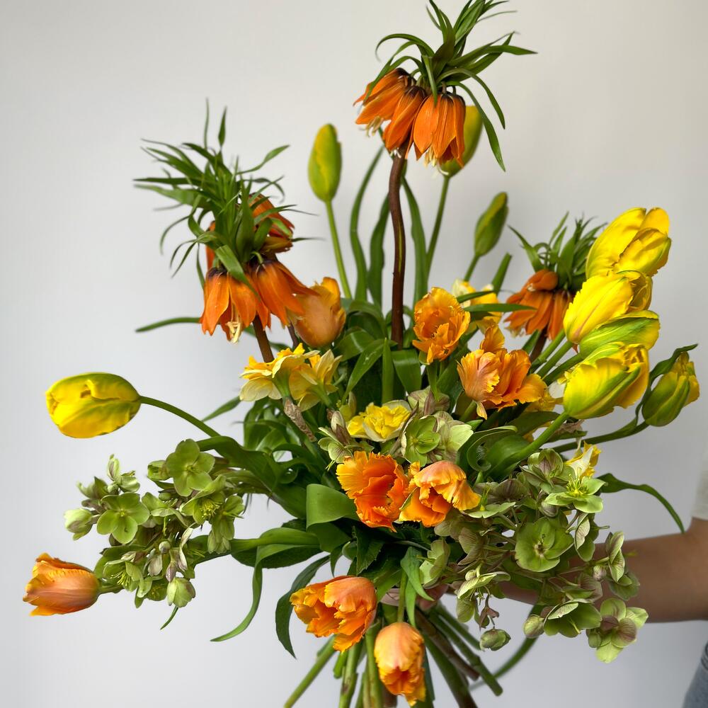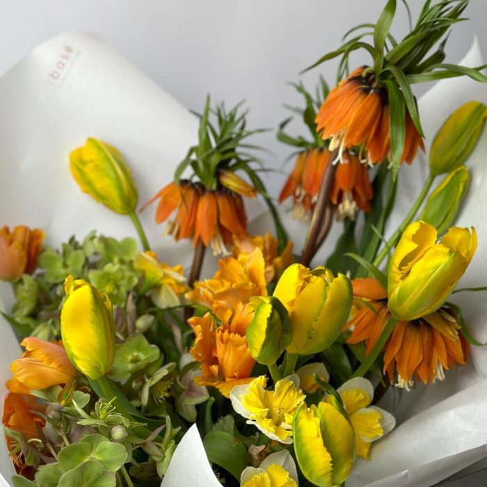 рябчик – 4 шт.Тюльпан желтый – 10 шт.Тюльпан оранжевый – 8 шт.Хелеборус – 3 шт.Нарцисс – 10 шт.