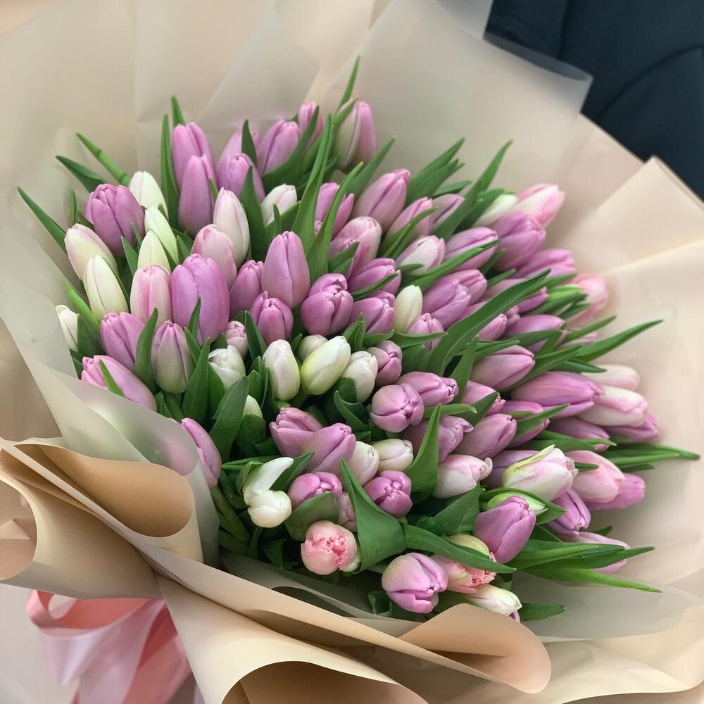25 пионовидных сиреневых тюльпанов дабл прайс. Букет 200 Kimbirly Flowers