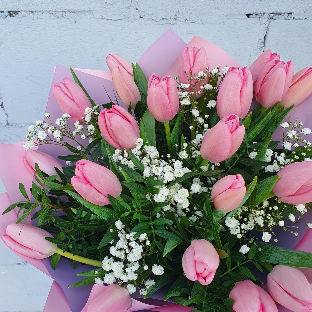 Тюльпан – 21 шт.Фисташка – 3 шт.Гипсофила – 1 шт.Упаковка дизайнерская – 1 шт.